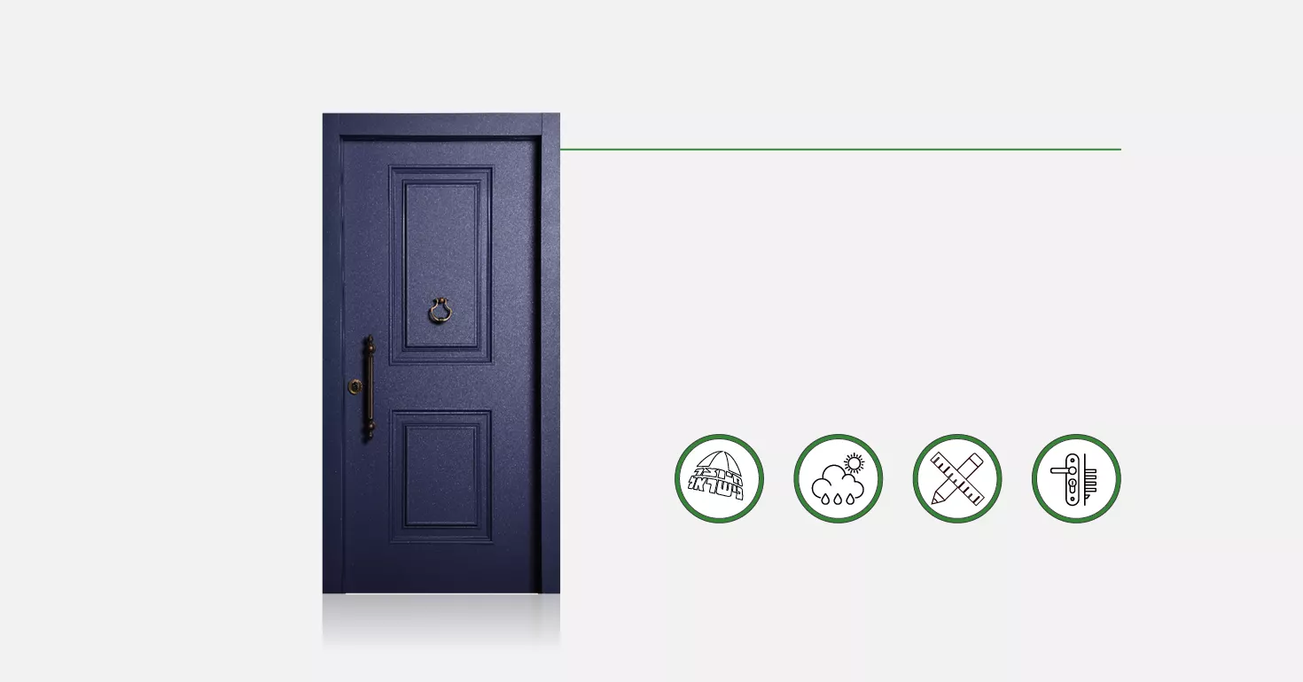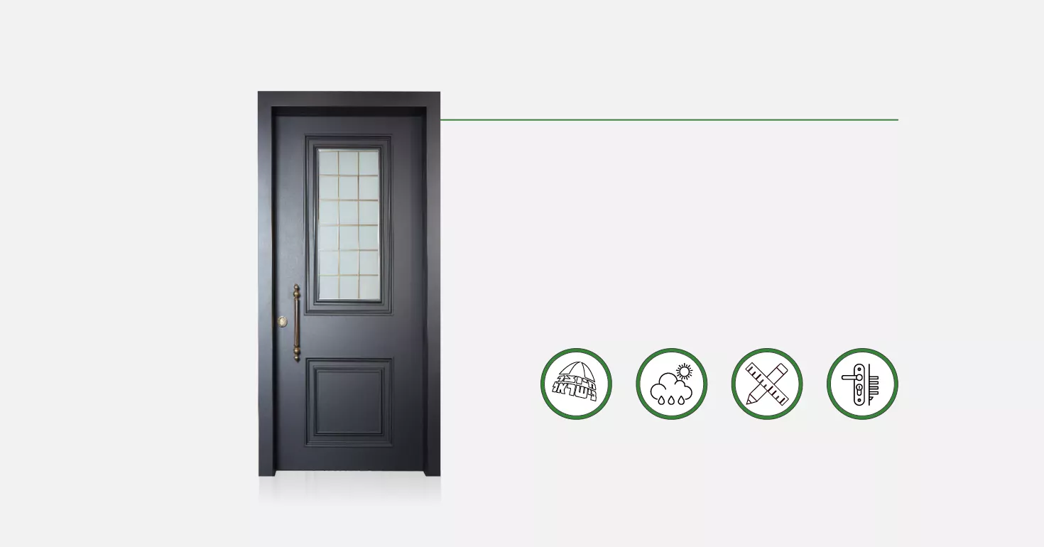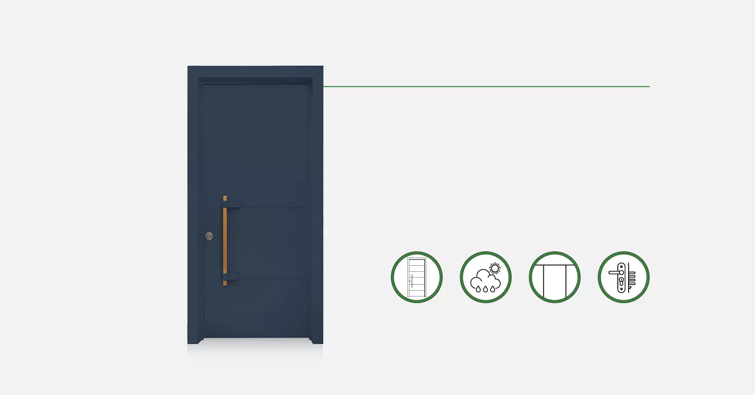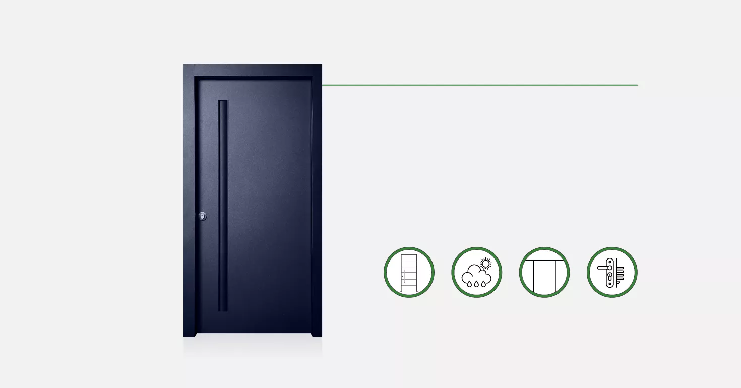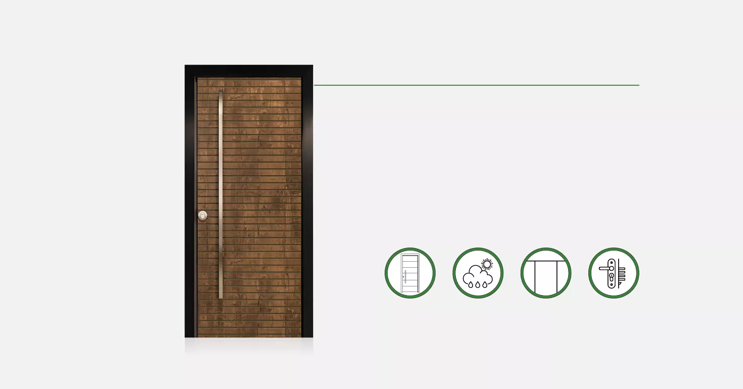 דלתות הכניסה שלנו עשויות פלדה. ניתן להזמינן במגוון חיפויים כדי לקבל את הסגנון העיצובי המועדף עליכם. והבונוס? ניתן לבחור חיפוי שונה לכל צד! מוזמנים להגיע לאולמות התצוגה שלנו ולהתרשם בעצמכם. כדאי לתאם פגישה!